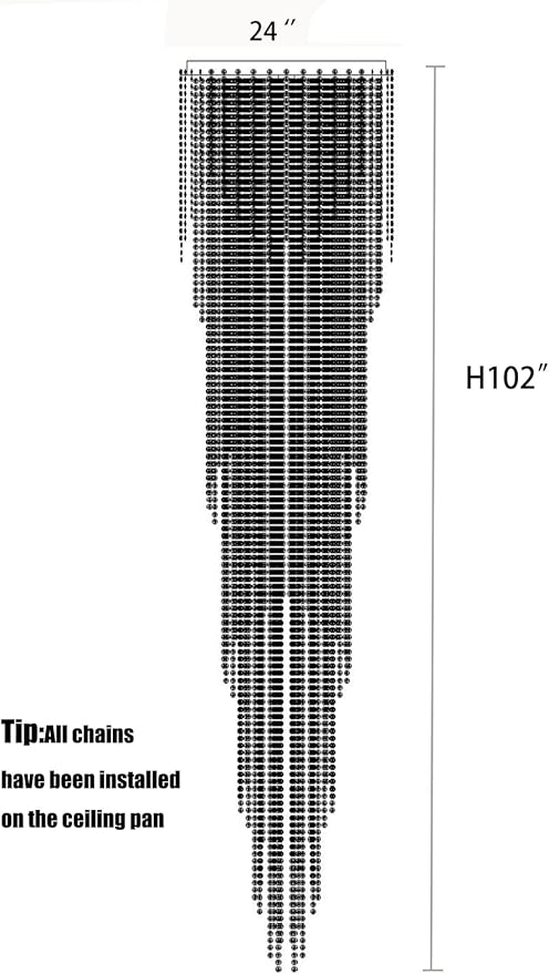 - [Modern Led Crystal Chandelier Size] Specification: the silver circular ceiling pan 24'', Pendant Light has a total length of 102''. Its unique design is striking and perfectly complements the modern design of the living area. Can be widely used in living room,dining room, hallway,entrance,stairwell. Highly recommend!Voltage: 110V.120V.220V.240V. Saving your electricity bill substantially.