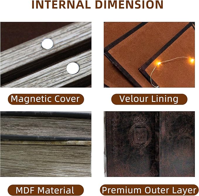 - The inside of this book box has a delicate plush lining and comes in three sizes, ideal for storing items of different sizes, such as jewelry, glasses, Christmas gift cards, photos, letters, etc