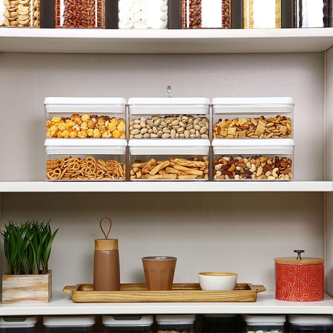 - AVAILABLE IN VARIOUS SIZES & SHAPES: The Felli Flip Tite container provides a wide variety of sizes and shapes, each designed to accommodate different types and amounts of food. The 4” REGULAR & RECTANGULAR sizes are ideal for small kitchen counter pantry organization, and their design ensures easy handling and pouring. The 5" LARGE size is perfect for storing powders that require scooping. Finally, the 6” XL size is specifically designed for bulk storage, making it versatile for various storage needs.