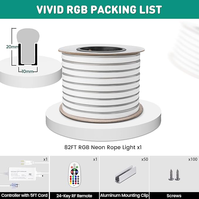 - Remote Sync & Command--Control up to 4 neon ropes with one remote! Effortlessly pair multiple strips for perfectly synchronized colors, effects, and brightness—ideal for large-scale setups. The 24-key RF remote controls 16 static colors, speed, and 4 dynamic modes within a range of 66 ft. NOTE: This is NOT color chasing Light.