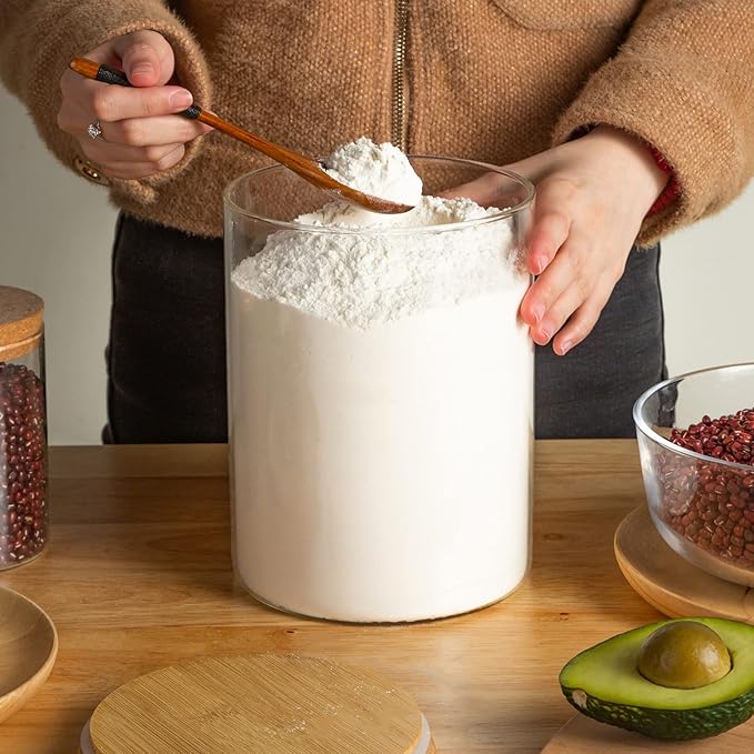 Food Storage Jars,2pack-105 Ounces3100ML -Stackable Glass Storage Containers Clear Glass Food Canister with Bamboo Lid Airtight For Serving Tea, Coffee, Flour, Sugar, Candy, Cookie, Spice and More
