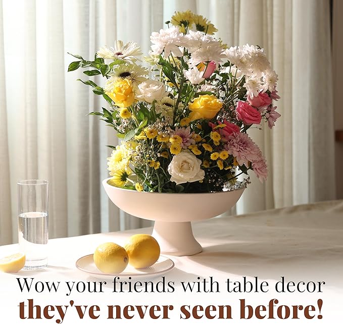 - Size - This Modern fruit bowl for serving has a 12 inch diameter with 5 inch height. It can accommodate a variety of healthy snack choices like fruits, vegetables, nuts, breads and even special treats like candy. This footed bowl is thus perfect as a centerpiece for table tops and family gatherings.