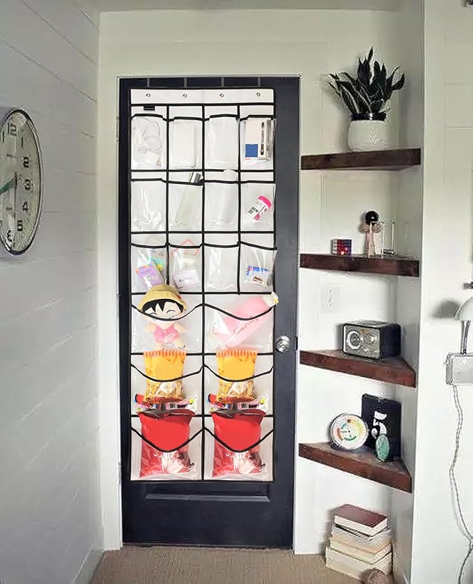 - 【1 Pack Over the Door Organizer】with 6 roomy and large Transparent pockets+12 routine pockets, hold more than 12 pairs shoes to free up floor/shelf space.