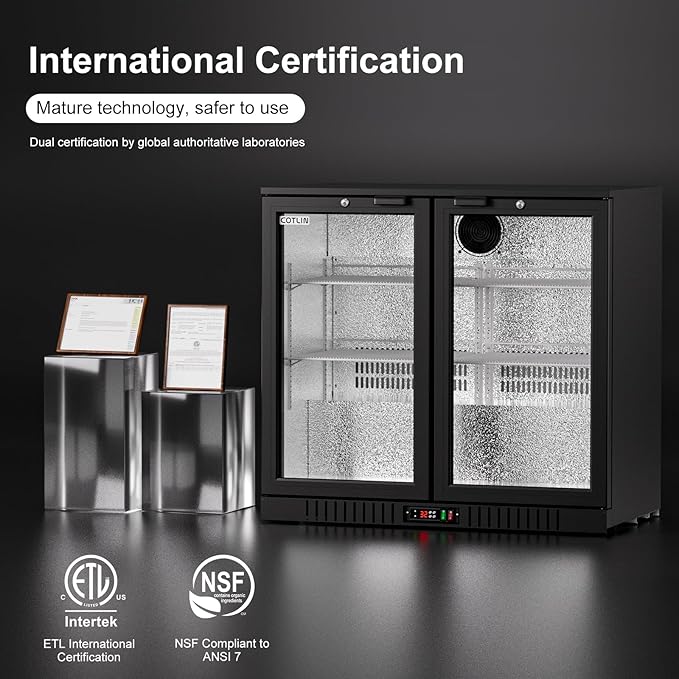 - 【Quality Assurance】Our beverage cooler are ETL certified and NSF compliant with the ANSI 7 standard for commercial refrigerators, ensuring that our bar cooler meet the industry's highest standards in safety and reliability. COTLIN also provides a 3-year technical service commitment and lifetime support, so you can choose and use this beer fridge cabinet with confidence.
