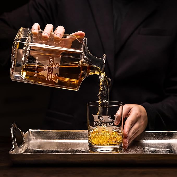 - PERFECT GIFT - Create lasting memories and enjoy the ultimate drinking experience with this personalized whiskey decanter & glasses set
