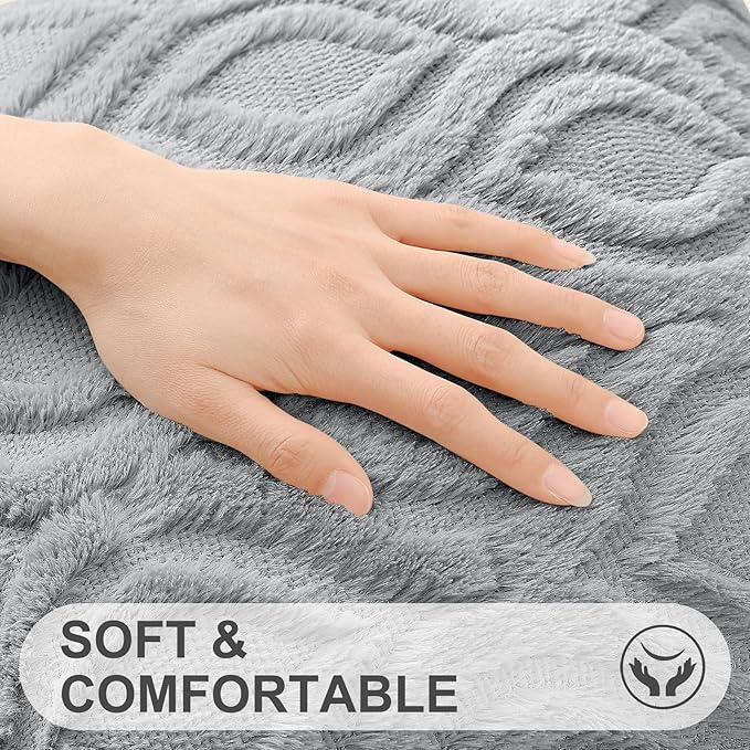 decorUhome Fall Throw Pillow Covers 16x16 Inch Set of 2, Soft Plush Decorative Faux Fur Grey Solid Couch Pillow Covers, Accent Farmhouse Neutral Square Euro Pillow Cases for Sofa Bed Living Room