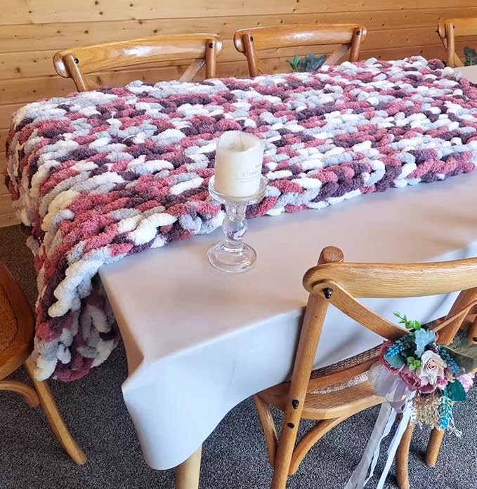 DDL&HEXI Chunky Chenille Blanket 100% Hand Knit with Jumbo Chenille Yarn (50"x60") Super Soft Large Throw Bed Blanket for Couch, Sofa, Home Decor - Machine Washable (05)