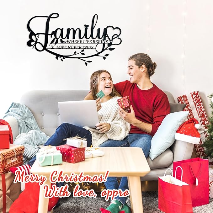 Family Sign Black Metal Wall Art Decor, Oppro Family Where Life Begins Love Never Ends Wrought Iron Wall Decorations, Hanging Plaque Letters Signs Home Decor for Living Room Bedroom Dining Room Kitchen Mother's Day Father's Day