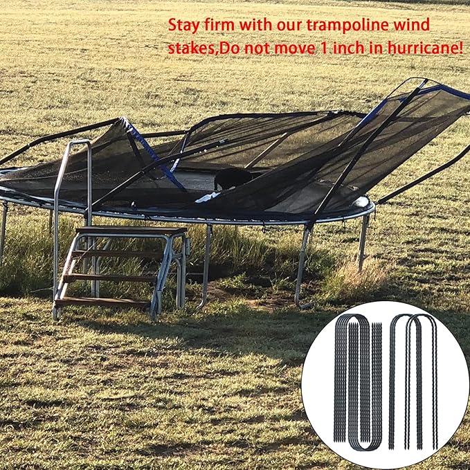 - 【KEEP YOUR TRAMPOLINE IN PLACE】The diameter of the steel is 2", big and strong enough to provide extra safety. Sharp Ends of stakes for easy insertion into the ground, which is anti-rust. Every parent should consider buying some extra things to fix your trampoline, camping tent or football goal and swing for your children's safety.
