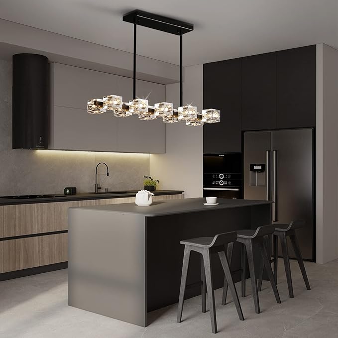 - 【K9 Crystal Material】The 10 lampshades of the ceiling light are made of clear K9 crystal,the lamp body is made of high-quality polished brass,the cube crystal lampshade is matched with G9 bulbs (bulbs are not included),and the crystal chandeliers reflects the bright light effect and projects it to the ceiling,making your home Reveals a low-key and elegant atmosphere,and modern black crystal chandeliers are perfect for dining room, kitchen island, living rooms, porches, and bedrooms at home