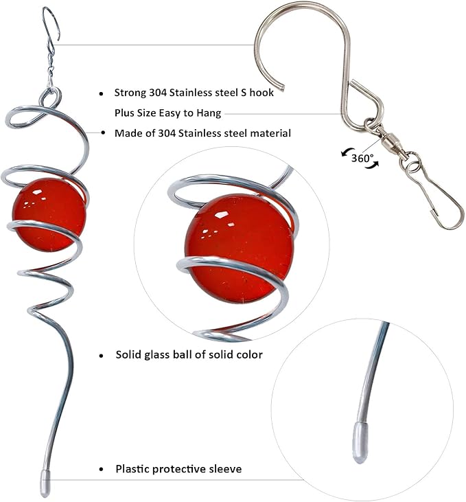 - 【Unique Spiral Design】The gazing ball spiral is an unique hanging ornament ,Also it can help to stabilize 3D wind spinners or yard decor from swing when it rotate.When the spiral tail rotates to the left, the glass ball seems to move upwards,when the spiral tail rotates to the right, the glass ball seems to moves downward,the glass ball seems to like floating and dancing in air, presenting a magical optical illusion!