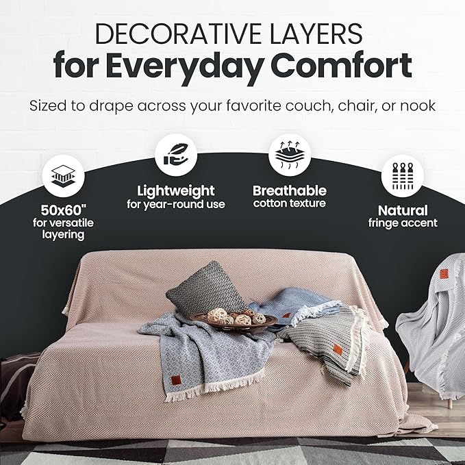 - CELEBRATE SUSTAINABLE STYLE: Made in Turkiye with recycled cotton, this couch throw blanket brings eco-conscious comfort to your home; the soft weave and fringe detail give this couch blanket a rustic, decorative touch that layers beautifully in any space