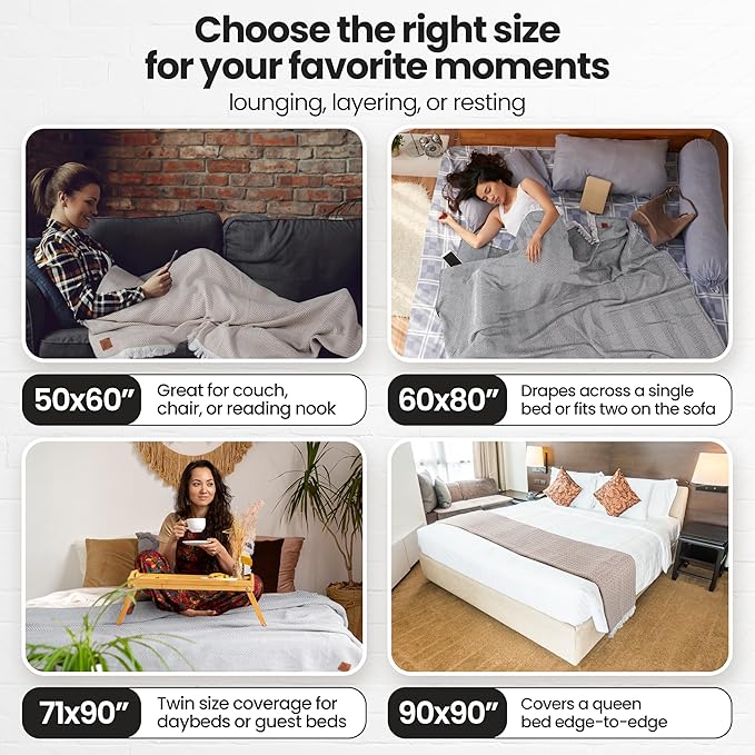 - EFFORTLESS CARE WITH BUILT-IN COMFORT: Our throw blankets for couch come pre-washed and ready to use; wash the cozy throw blanket on cold, tumble dry low, and avoid bleach or high heat to help reduce lint, fraying, and fabric wear over time.