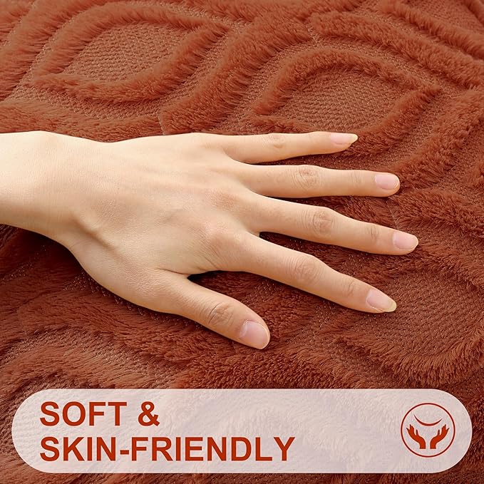 decorUhome Fall Throw Pillow Covers 18x18 Inch Set of 2, Soft Plush Decorative Faux Fur Rust Solid Couch Pillow Covers, Accent Farmhouse Neutral Square Euro Pillow Cases for Sofa Bed Living Room