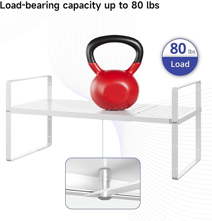 - 【Heavy-Duty Capacity】 This cabinet shelf organizer is built to last, with a durable and sturdy construction that can support up to 80 lbs of weight, making it perfect for storing even your heaviest kitchen items.