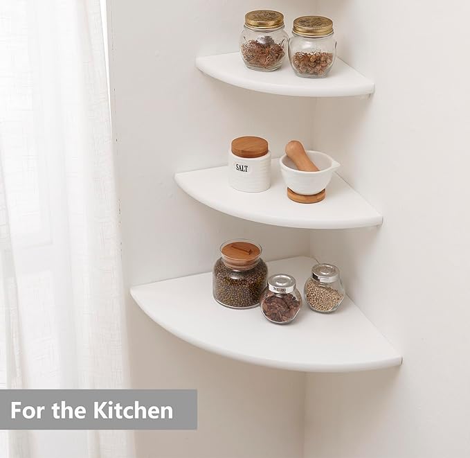 - Functional Corner Wall Shelf: Floating corner shelf practical wall space saver, and very useful for adding extra storage space to store and reorganize small items in your bathroom, bedroom, living room, kitchen, and more, it is a nice way to clear up the clutter