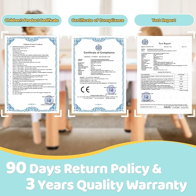 - 【CPC & CE certified, Safe & Stable】We focus on every detail to ensure kids' safety. FUNLIO toddler tables and chairs are CPC and CE certified. The set is made of MDF and PPC plastic, healthy materials for children to touch. The items are well made and quite smooth, without any burrs. Rounded table corners keep the child safe. Curved seat back is good for a child's spine while sitting. Adjustable non-slip table feet and the 220lbs weight-bearing capacity help it stand stable on the ground.