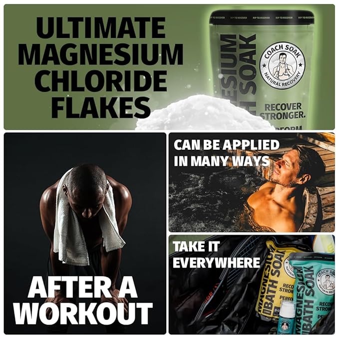 - Muscle Support Bath Soak: Experience natural muscle and joint support with Coach Soak’s bath soak, featuring magnesium flakes, Dead Sea salts, and Vitamin C. Designed for foot or full-body soaks, our bath salt blend delivers a refreshing experience that’s perfect after a long day or intense activity