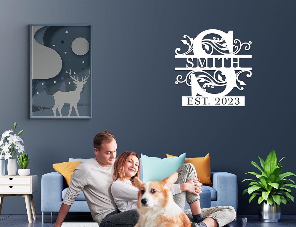 - Stunning Split Letter Design: Our split letter monogram wall decor showcases your family name in a unique and eye-catching way.