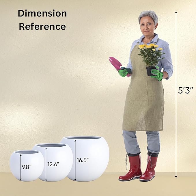 - STYLISH DESIGN: This modern sphere planter comes in a range of colors and sizes. Perfect for patios, decks, balconies, and entryways, fiberstone planters add a sophisticated touch to any outdoor or indoor space. Whether used as a statement piece or arranged in groups to showcase vibrant greenery, their sleek and cohesive look enhances any setting.
