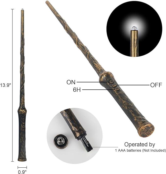 - MAGIC WAND REMOTE CONTROL - The included 13.9-inch magic wand remote control adds a touch of fun and fantasy to your decor. you can easily turn the on and off the candlelight, and it also has a 6-hour timer function. Magic wand remote requires only one AAA battery to power on (not included).