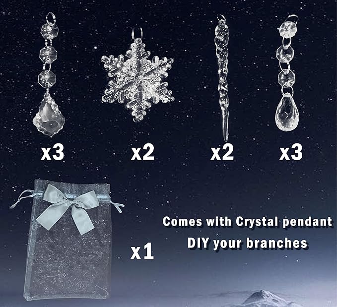 - π Come with Crystal Pendant: 4 different type of crystal decorations,just DIY your christmas branch lights