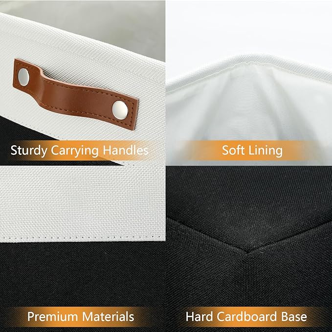 DULLEMELO Fabric Storage Baskets 3 Pack - 17x12x15 inch Large Foldable Fabric Organizer for Storage Decorative Storage Bins for Home,Closet(White&Black)