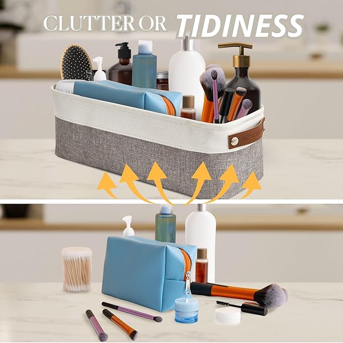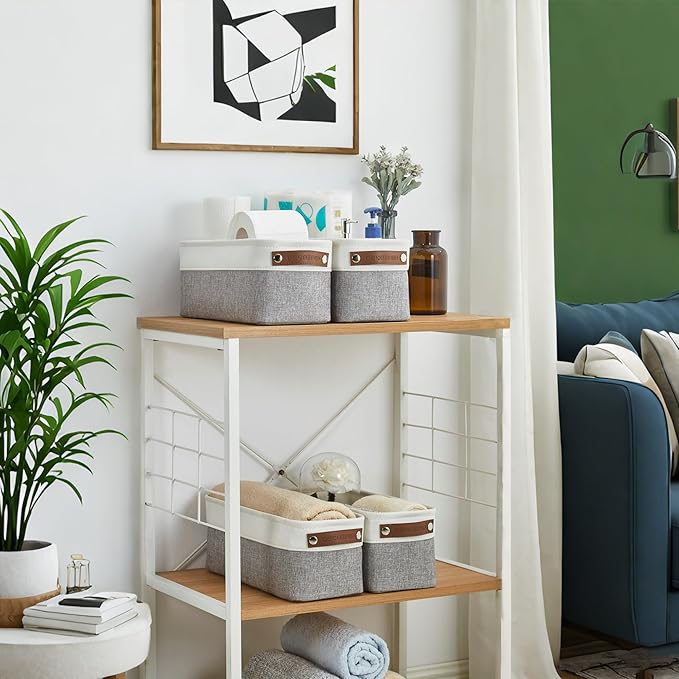 DECOMOMO Narrow Storage Bins Small Baskets for Organizing Bathroom, Toilet Tank, Towel Storage, Entryway, Gifts (Grey and White - Set of 4)