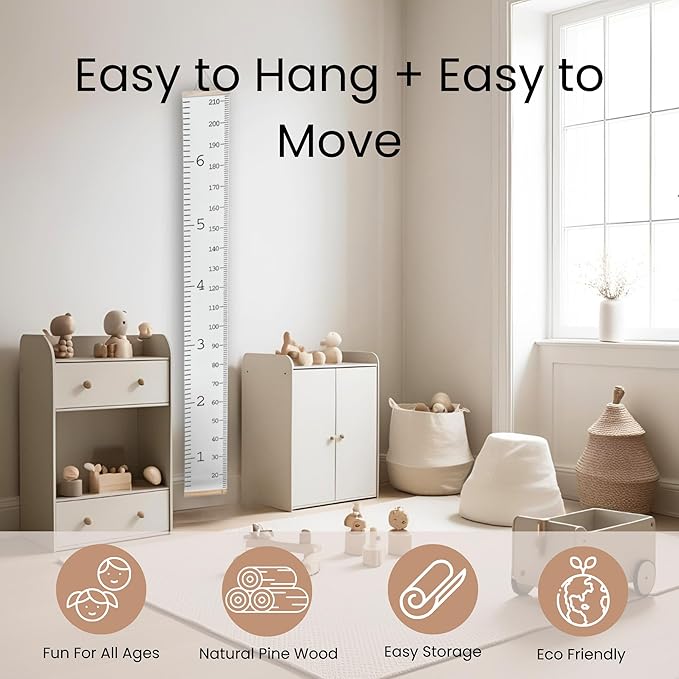 - 🎈 Stylish & Minimalist Wall Décor: Designed with a modern, minimalistic look, this growth chart for wall adds charm to nurseries, bedrooms, or playrooms - a fun keepsake and beautiful wall accent parents love.
