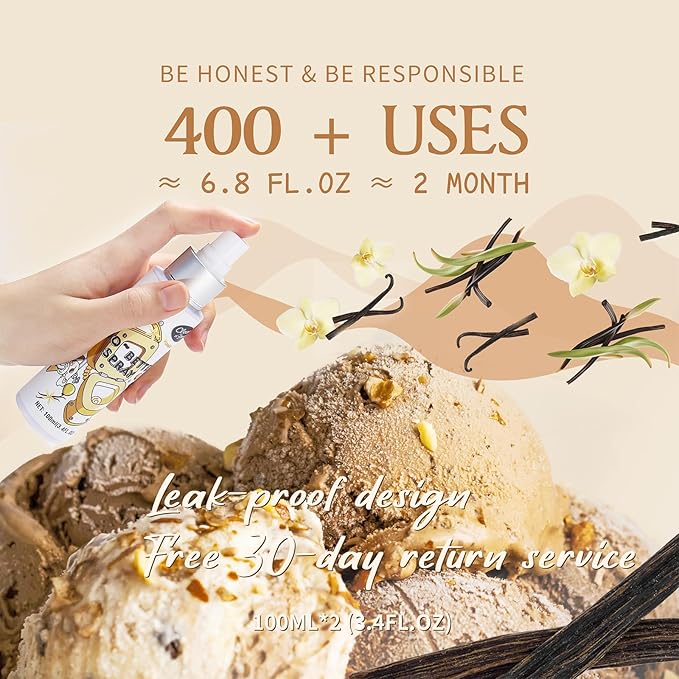 - LONG LASTING FRESHNESS: 2*3.4 FL.OZ ≈ Up to 400 Uses ≈ 2 Month for average poopers, all for lovely ones. Spray the surface of the toilet a few times to lock in the unpleasant smell, and no one else will ever know