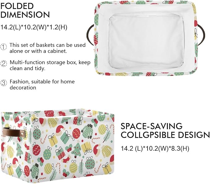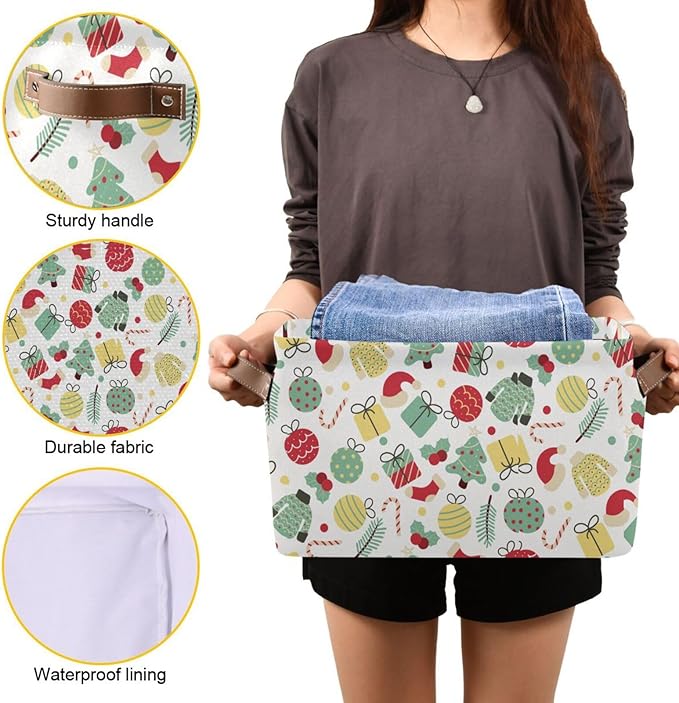 Christmas Storage Basket Tree Candy Canes Socks and Gift Storage Bins Organizer Bag Collapsible Closet Shelf Baskets Cube with handle for Baby Cloth Pet Toy Book 14.2×10.2×8.3 IN