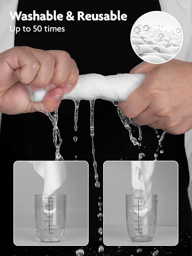 - [Alternative to Paper Towels] Designed for durability, the cloths are washable and reusable up to 50 times. The sturdy 175gsm microfiber will be a highly effective cleaning results