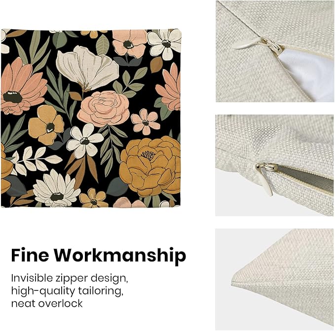 - 【Spring Pillow Covers】 Our floral throw pillow covers 18x18 inch are made of excellent breathable polyester linen fabric. The black decorative pillow covers is durable, soft and skin-friendly. The plant outdoor pillow covers adopt exquisite edging technology and four sides of our floral pillow covers are sewn firmly, which is not easy to open the line.
