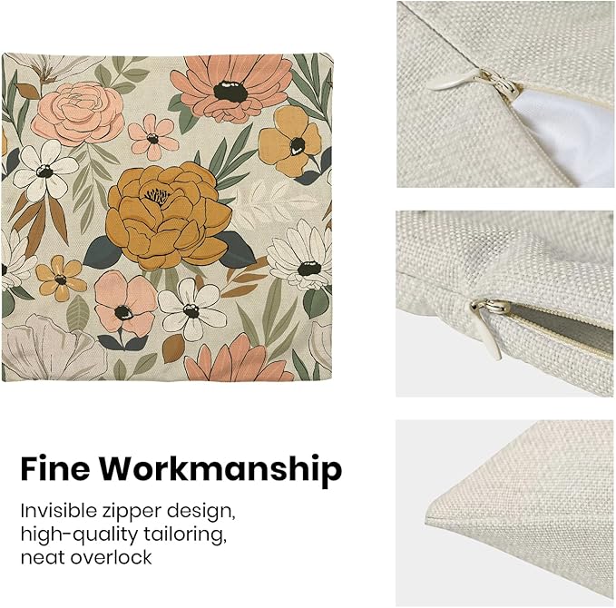- 【Spring Pillow Covers】 Our floral throw pillow covers 16x16 inch are made of excellent breathable polyester linen fabric. The cream decorative pillow covers is durable, soft and skin-friendly. The plant outdoor pillow covers adopt exquisite edging technology and four sides of our floral pillow covers are sewn firmly, which is not easy to open the line.