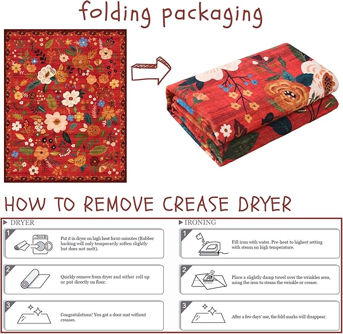 - ✨ WASHABLE RUG: Protecting rugs from spills is nearly impossible, especially you have a child, a pet, or one of the messier hobbies. Use vacuum cleaner, broom, or wipe for daily cleaning to prevent dust and crumbs from setting into the fibers. if excess liquid remains or dirt on the surface of the rug and you want your rug to to be thoroughly clean, Machine wash with cold water on gentle cycle(not to add bleach),air dry or dry on air-only cycle with out heat.