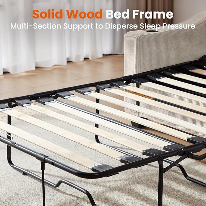 - 【Four Sofa States for Various Scenarios】Our sofa bed supports four different configurations to meet your varying needs. It operates in a standard mode for daily use; by adjusting it as shown in our diagram, you enter the comfort mode, perfect for enjoying leisure time in bed; switch to the nightlight mode for easy nighttime standing; and the sleep mode optimally supports your sleeping needs