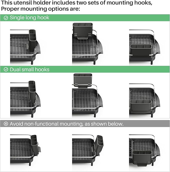 - Versatile Organization: Our drying rack comes equipped with a dish rack, a versatile rack and a detachable utensil holder, offering efficient storage for plates, bowls, cups, and utensils. Elevate your kitchen convenience with this space-saving solution that keeps your essentials neatly organized.