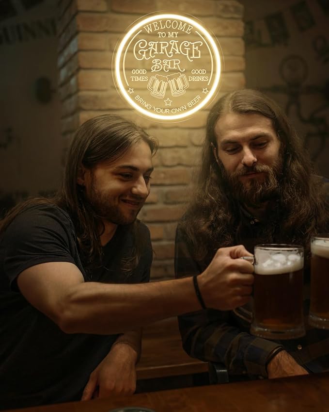 - 🍻【Garage Bar Neon Sign】Embrace the fun and relaxation with the garage bar neon sign! This vibrant neon light is the perfect addition to any camping or gathering, bringing a touch of fun and camaraderie to your bar party.
