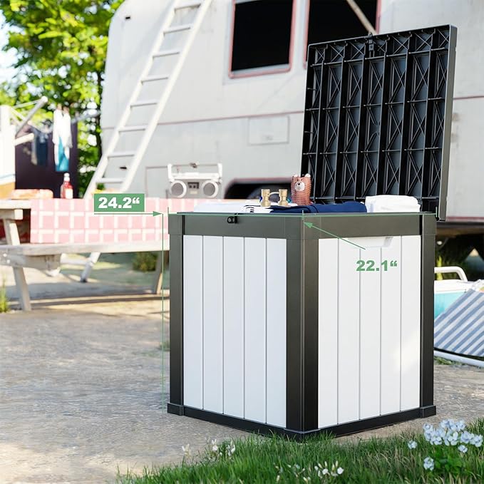 - ๐๐จ๐ฆ๐ฉ๐๐๐ญ ๐ฒ๐๐ญ ๐๐จ๐ฐ๐๐ซ๐๐ฎ๐ฅ - With product dimensions of 22.1"L x 22.1"W x 24.2"H , Although this outdoor storage box has a storage capacity of only 28 gallons, but it can hold a variety of additional items in your backyard, such as patio cushions, pillows, gardening tools, and hoses. This outdoor storage box is the best choice for storing small items.Applicable age: 0 years and above