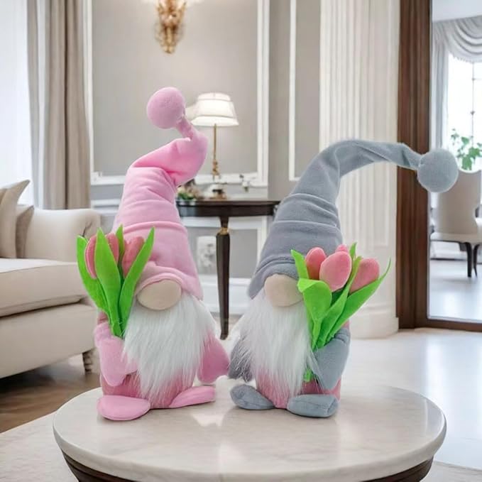 - ♛【Unique Design&Heartwarming Gift】 Plush Gnome Dolls holding tulips and wear long hats will be the hit of your every occasion. They seem to say wish you happy and lucky. Bring a special gift for holiday with this adorable gnome plush decoration, the perfect choice to express infinite love for your mom.A warm gift to wife, mom, girlfriend, teacher or people who collect gnomes, and bring them good luck, love and warm.