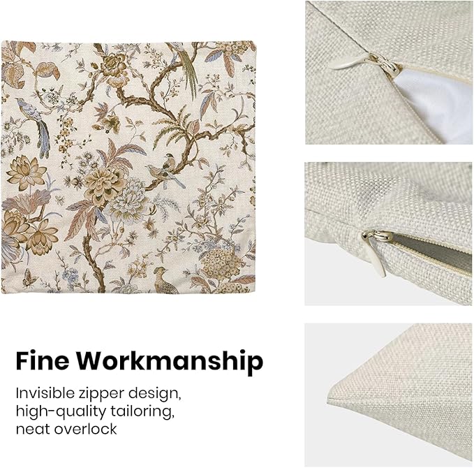- 【Spring Pillow Covers】 Our Chinoiserie floral throw pillow covers 18x18 inch are made of excellent breathable polyester cotton fabric. The brown and white floral decorative pillow covers is durable, soft and skin-friendly. The plant outdoor pillow covers adopt exquisite edging technology and four sides of our floral pillow covers are sewn firmly, which is not easy to open the line.