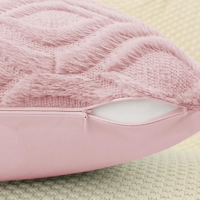 decorUhome Throw Pillow Covers 24x24 Inch Set of 2, Soft Plush Decorative Faux Fur Light Pink Solid Couch Pillow Covers, Accent Farmhouse Neutral Square Euro Pillow Cases for Sofa Bed Living Room