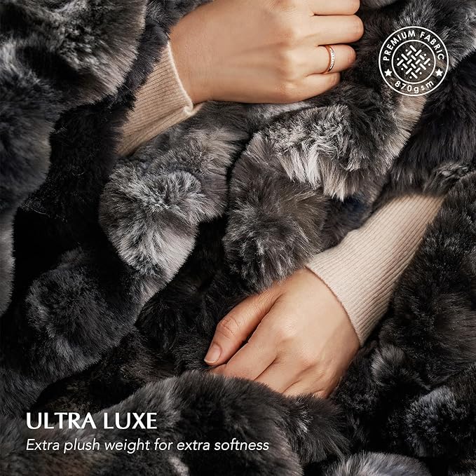 EVERGRACE Ultra Soft Luxury Fluffy Ridgeline Faux Rabbit Fur Bubble Throw Blanket, Thick Warm Fuzzy Throw for Bed, Cozy Plush Reversible Blanket for Couch,Charcoal Grey Heather, 50x60 Inches, 870 GSM