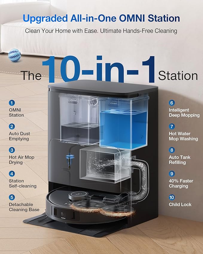 - Special Feature : 11000Pa Unbeatable Suction, 158℉ Hot Water Auto Mop Washing, Innovative ZeroTangle Technology, TruEdge Adaptive Edge Mopping Technology, Upgraded All-in-One Station 11000Pa Unbeatable Suction, 158℉ Hot Water Auto Mop Washing, Innovative ZeroTangle Technology, TruEdge Adaptive Edge Mopping Technology, Upgraded All-in-On… See more