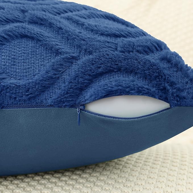 decorUhome Fall Throw Pillow Covers 26x26 Inch Set of 2, Soft Plush Decorative Faux Fur Dark Blue Solid Couch Pillow Covers, Accent Farmhouse Neutral Square Euro Pillow Cases for Sofa Bed Living Room