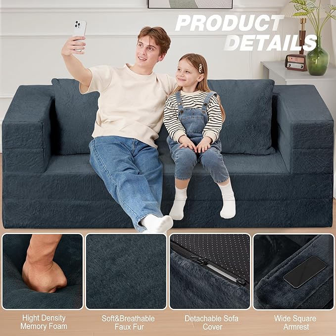 - 【Two Pillows & Easy to Clean】The floor bean bag sofa bed is equipped with pre-filled sponge pillows for you and your pets better rest and entertainment. And the removable and washable covers allow for stripping and machine washing to keep the love seat couches fresh.