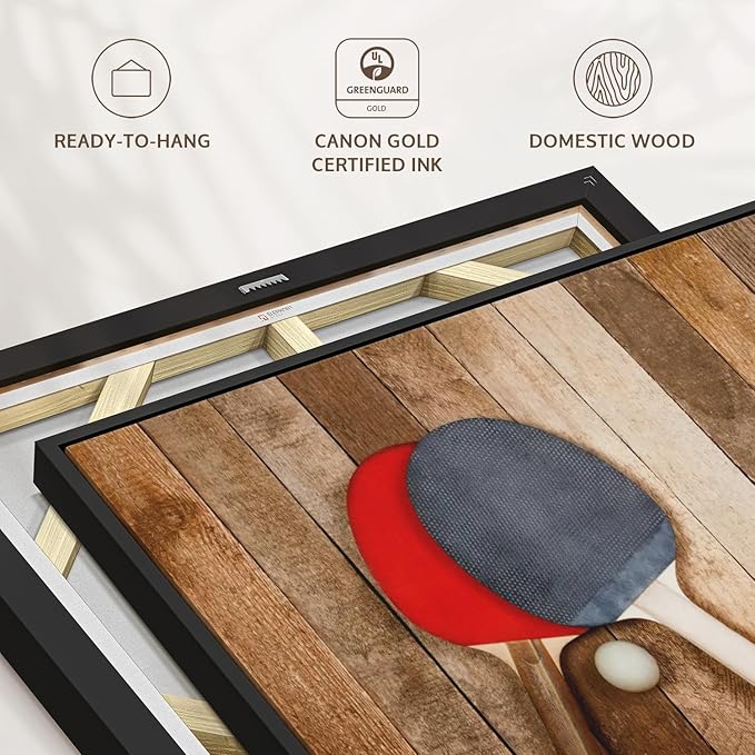 - Durable Canvas Features - Our long-lasting racket sports 1-Piece canvas is made from a non-fading UV and Humidity-resistant 330 GSM Polyester Canvas. This Wooden Ping Pong canvas can be used as a minimalist living room wall art.