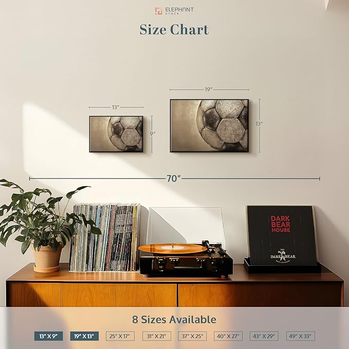 Elephant Stock Worn Soccer Ball Wall Art - Horizontal Framed Canvas - 1-Piece Living Room Wall Decor - Photography sports Canvas Print - Brown and Gray Decor for Wall - 19" X 13"