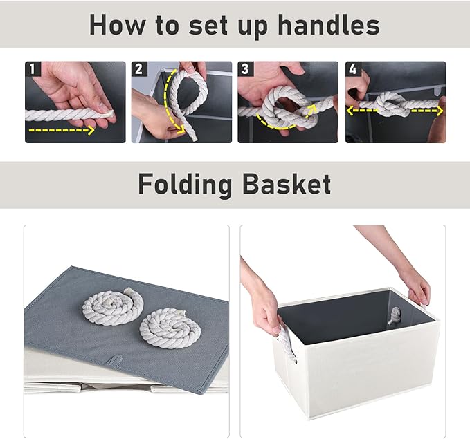 - 【Decorative Storage Bins for Closet with Handles】These cloth storage bins for closet organization are made with soft leather handles for easy carrying, and the neutral beige color shelf organizer bins are suitable for any room decor