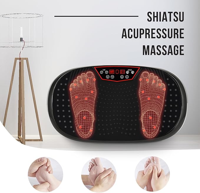 - ✅ VIBRATION PLATE WITH UNIQUE ACUPRESSURE SURFACE– Eilison OSCILLATING VIBRATION- 3D whole body vibration plate exercise machine has a unique acupressure plate surface which with the help of strong vibration from our vibration platform machine presses the pressure points on the feet which helps in relieving back pain, headache, insomnia, blood circulation, muscle & joint pain, stress, Anxiety. This workout machines helps you to release blocked energy to maintain healthy life